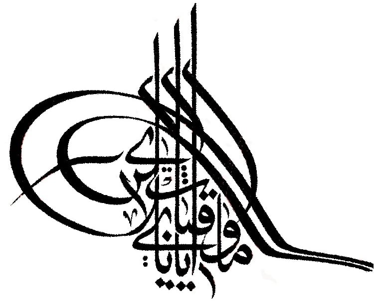 The tugra has a characteristic form, two loops on the left side, three vertical lines in the middle, and two extensions to the right. Each of these elements has a specific meaning, and together they make up the form that is easily recognizable as a tugra. Beyond these essential forms, the rest can be up to the imagination of the calligrapher who invents them.