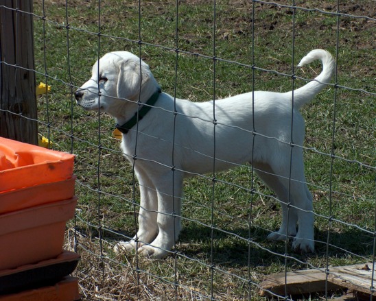 2. Establish a fence boundary by walking LPDs on a leash around a pasture’s perimeter and to never allow them to pass through a fence/gate unless on a leash. Making a LPD’s first experience with the fence a negative one is important to prevent roaming activities. Their first experience with an electrified fence should involve walking them (on a leash) around the pasture perimeter and allowing the dog to investigate the fence and receive a shock, followed by continued walking and shocking. To reinforce aversion to fencing, producers should walk LPDs daily around the pasture for several weeks, with corrective shocking, before releasing them into the pasture. When and LPD demonstrates great resistance to being forced near fencing, they are properly conditioned.